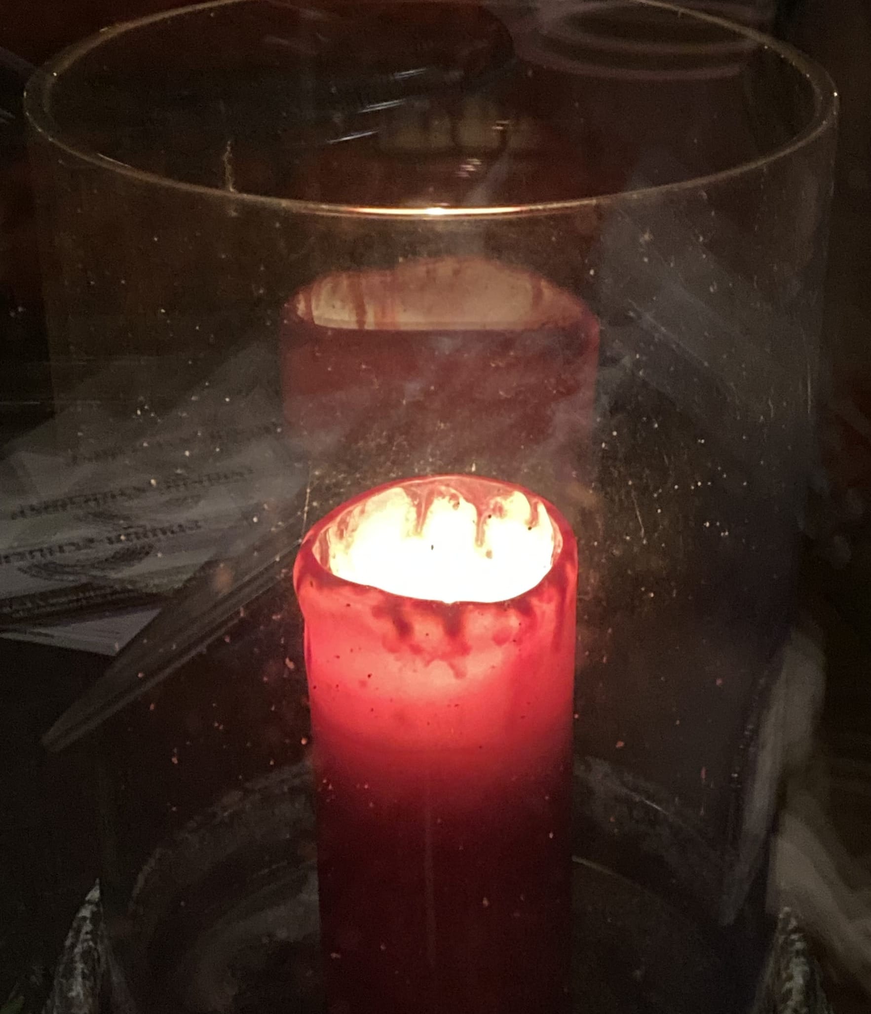 Halb sechs und schon ist es dunkel. Ich bin wieder etwas melancholisch. Heute wenig Licht. Grau, Trüb, keine Sonne. Doch dann zünden wir die rote Kerze vor der Tür an. Ihr Flackern macht den Abend gleich heimeliger. Das mag ich am Herbst und Winter.