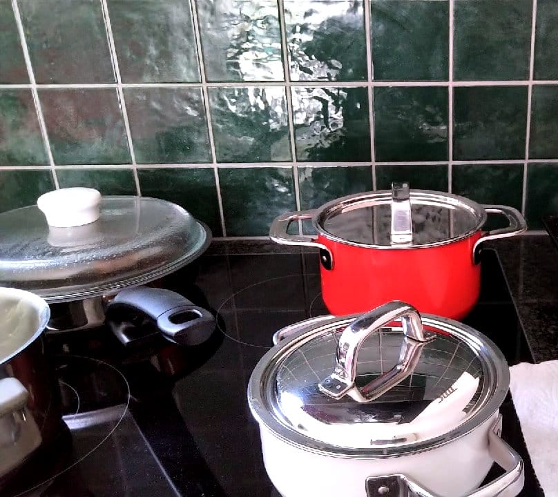 Alle Töpfe und Pfannen sind auf dem Herd.